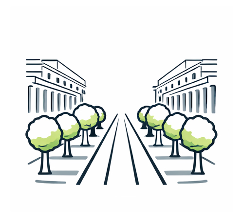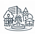 - Wygodne połączenia piesze między budynkami a placami miejskimi